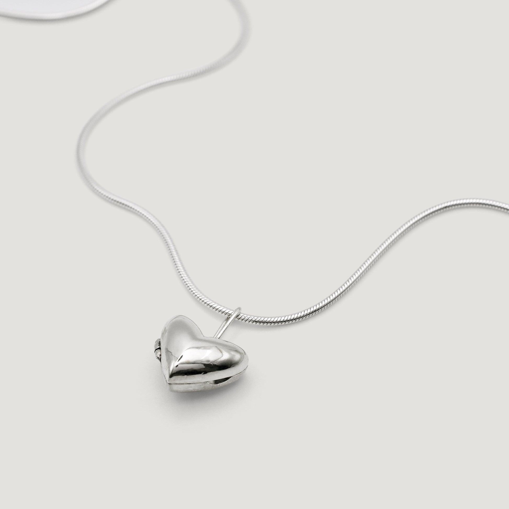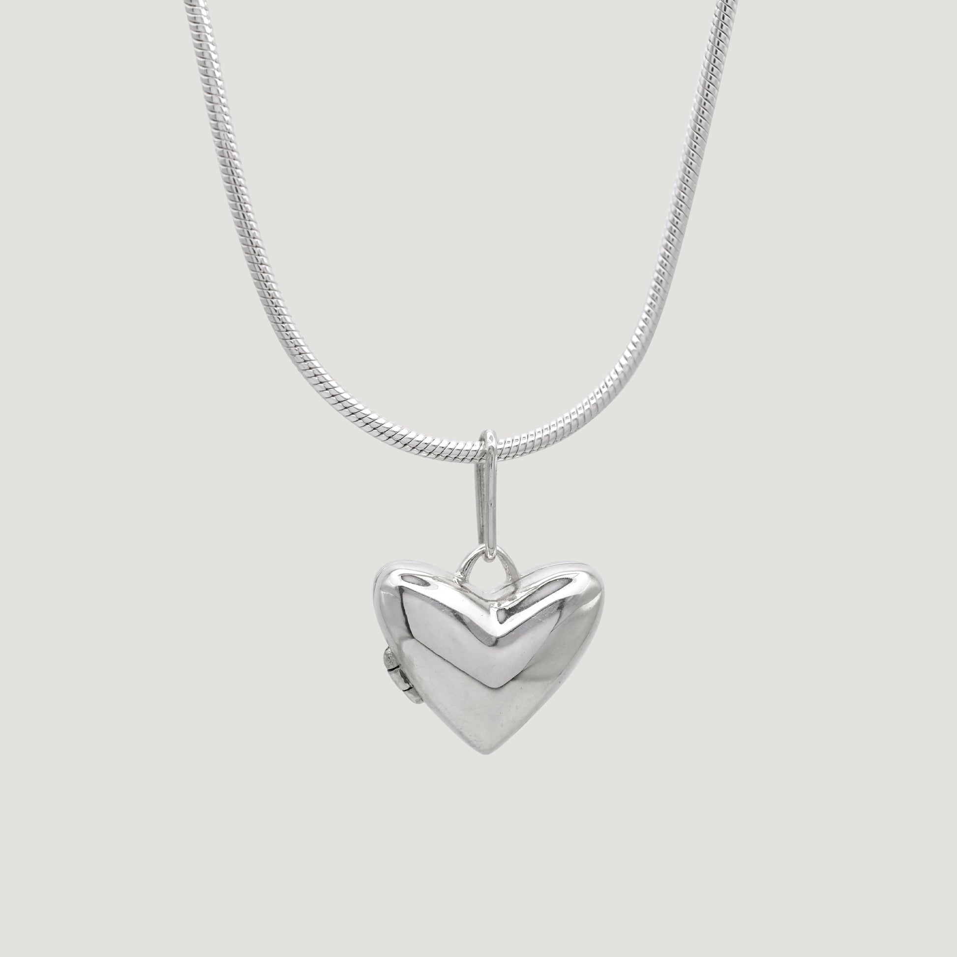 A heart full of meaning — this sterling silver locket is more than just a pretty piece. With a polished, full-sized heart design, it opens to reveal a delicate initial charm that gently dangles inside, adding a playful, personal touch that moves with you.